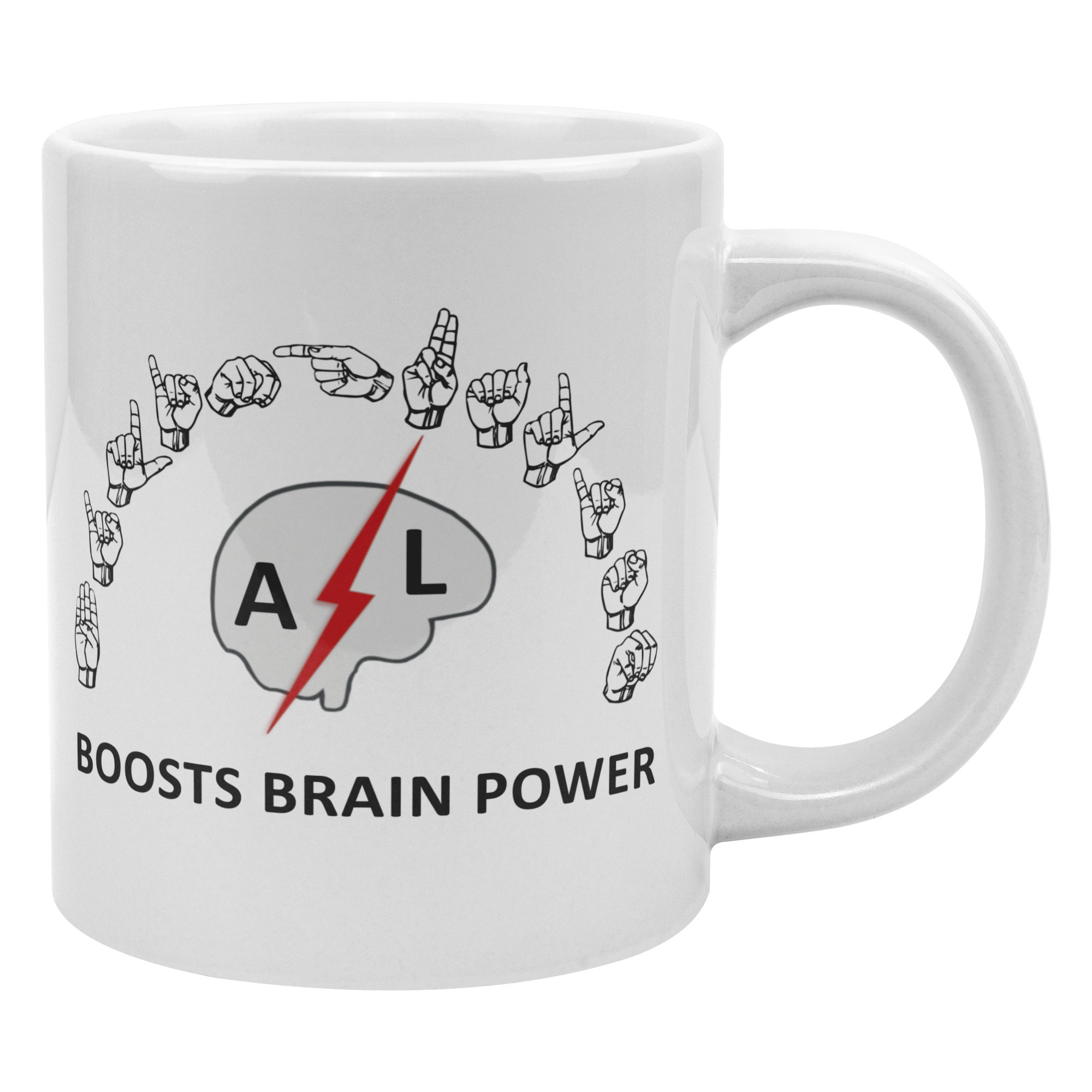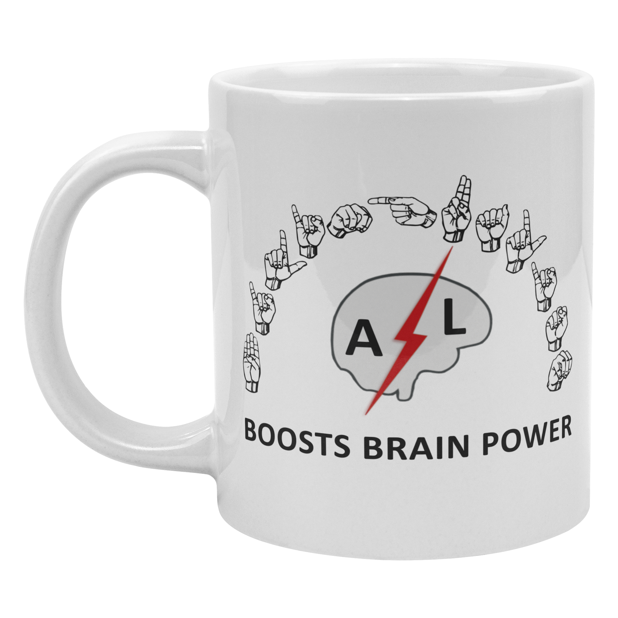 Sign Language Mug "Brain Power" Ceramic 20oz ASL Coffee Mug